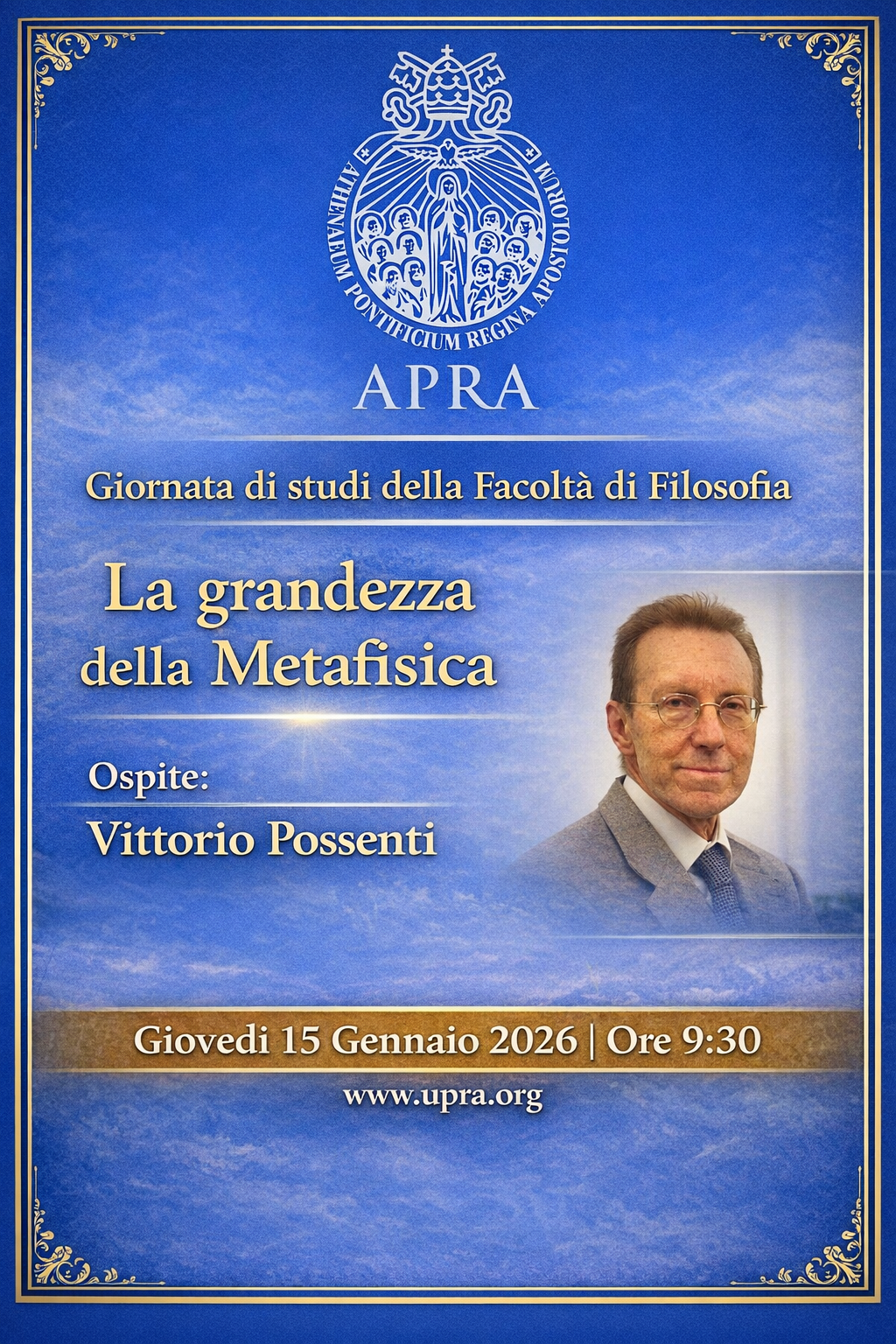 In un’epoca segnata dal frammentarismo post-moderno, la Facoltà di Filosofia intende rimettere al centro della riflessione accademica il valore della metafisica come fondamento del sapere. Il dialogo con il Prof. Possenti permetterà di esplorare la vitalità e la necessità di una ricerca che interroghi le strutture ultime della realtà.